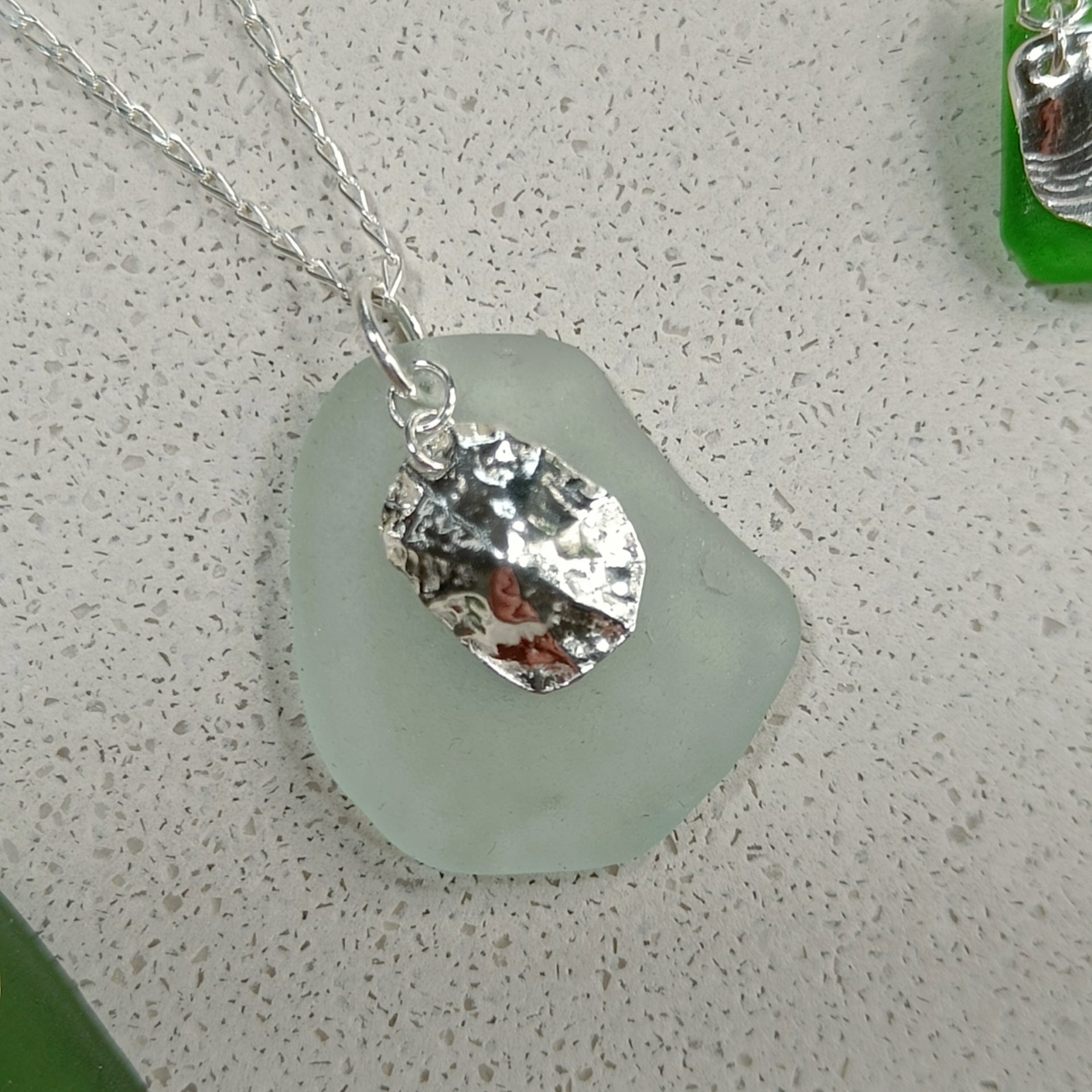 All my silver pendants and charms are handmade, and my sea glass is carefully curated. As such each piece of jewellery has its own unique shape and texture, and may have slight variations in size.