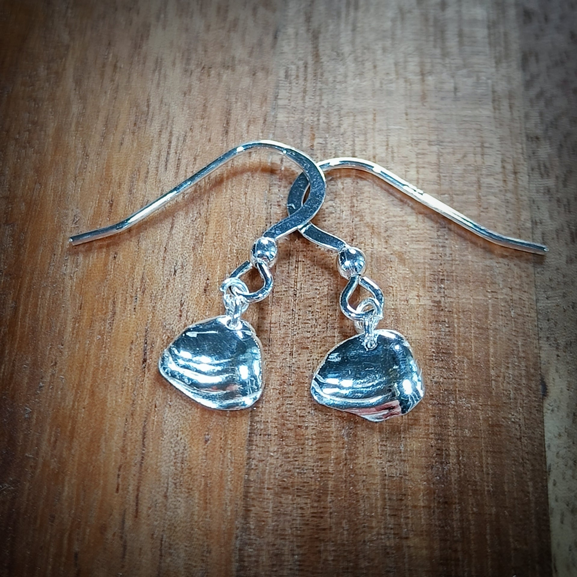 Handmade silver earrings. Lovingly created with stunning delicate fine silver Clam shell charms, hung on stylish sterling silver ear hooks